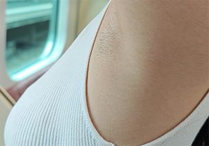 その上、暑さのせいでキャミソールの袖口には腋汗でぐっしょりと濡れた濃い染みが。